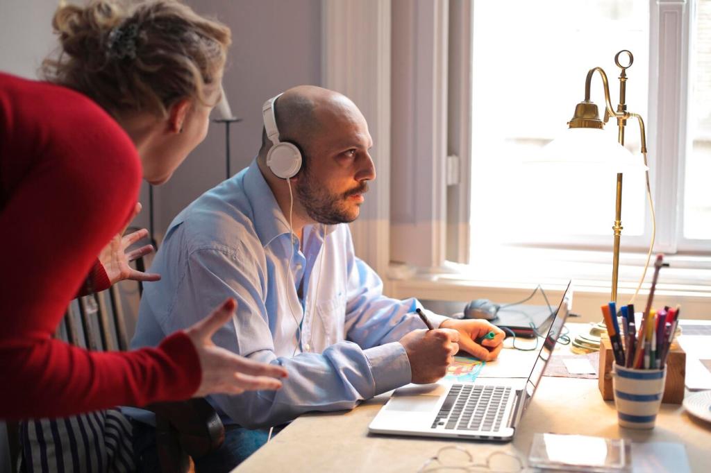 Planen Sie Übergänge zwischen Terminen als bewusste Puffer ein. Benennen Sie Fokusblöcke sichtbar. Ein freier Freitagvormittag für Planung senkt Stress. Abonnieren Sie unsere Tipps, um monatlich erprobte Kalender-Layouts zu erhalten und umzusetzen.